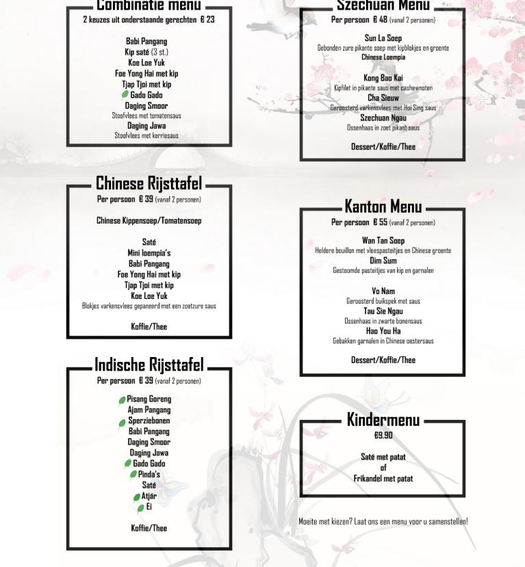 Door onze uitgebreide menukaart kunt u genieten van verschillende smaken uit China.